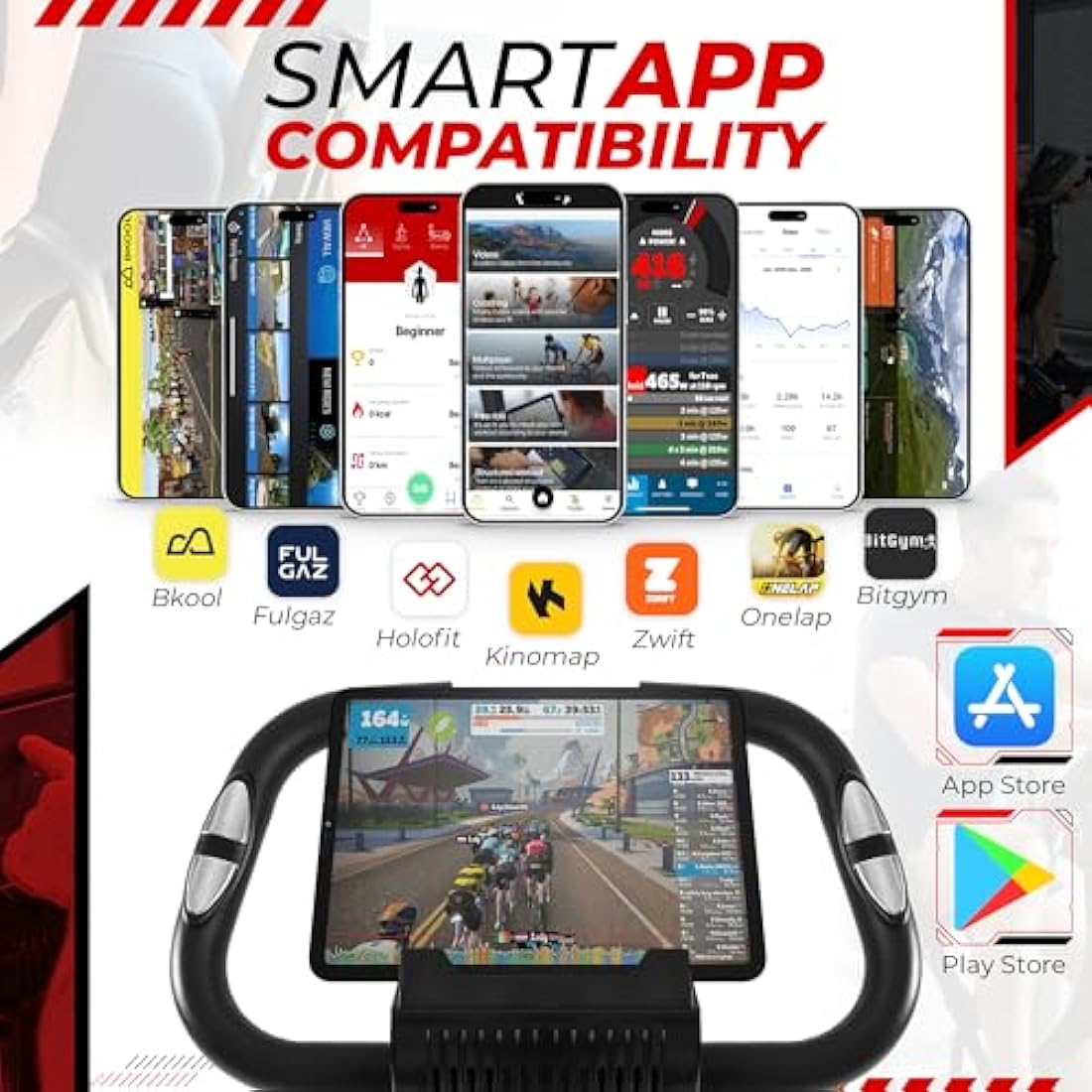 ✔️ SMART PHONE APP INTEGRATION: The SmartXBike Pro seamlessly connects with smartphone apps like Kinomap and VR headsets, adding an immersive and engaging experience to your workouts. This gives you the options to virtually train around the world, take part in competitions, and monitor your progress, making training fun and keeping you motivated to train harder.
