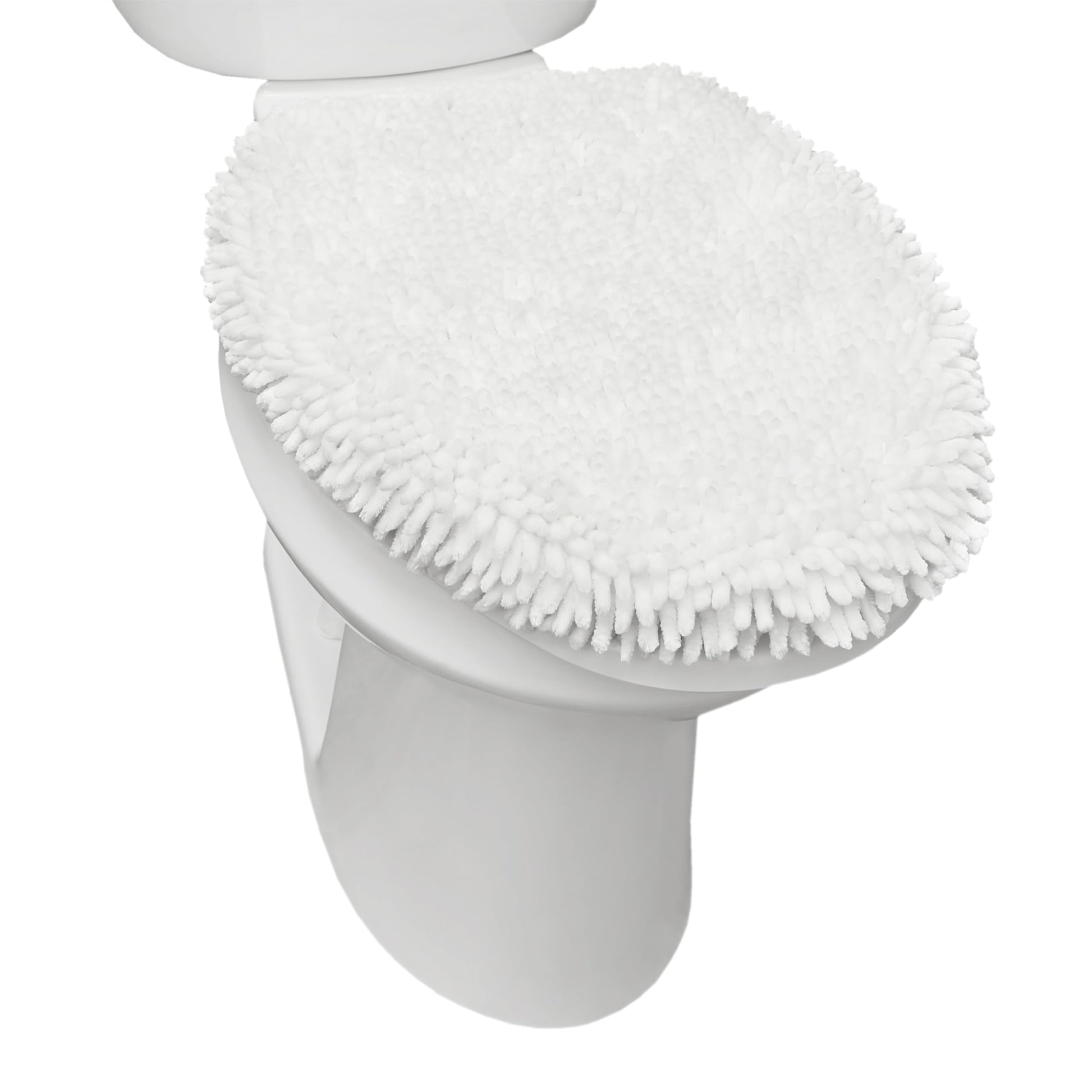 SoHome Spa Step Luxury Plush Chenille Shag Machine Washable Ultra Soft Standard Toilet Lid Cover 18.5"x19.6" White