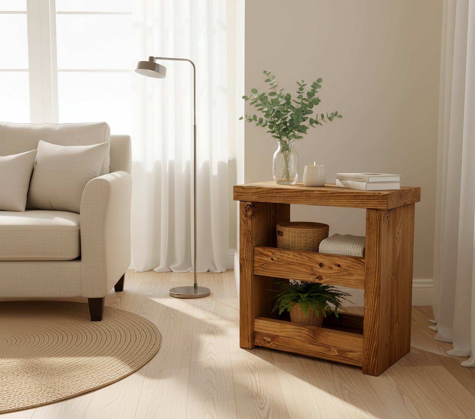 Solid Wood Rustic Coffee Table with Timber Legs | Space Saving Side Table | End Table | Handmade Coffee Table with Shelf | Storage