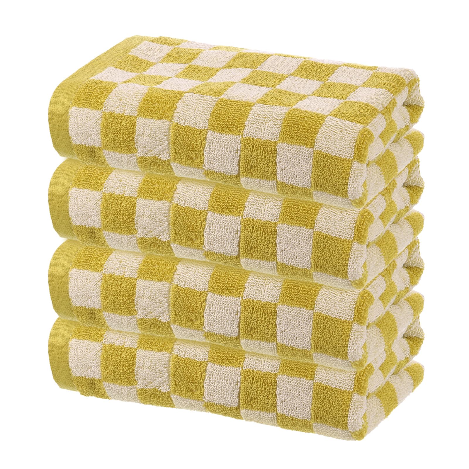 Description: Cotton Material: The hand towels are made from soft cotton material, with good softness, absorbency, and durability, quickly dry, and do not easily fade. Soft and Absorbent: The towels are designed to be soft to the touch and highly absorbent, ensuring quick drying after use, providing comfort and efficiency when used, and the checkered pattern can easily match various bathroom and kitchen decors. Functional Use: After washing hands or face, simply take the towel and gently pat or rub the damp area to absorb the moisture. For hair, wrap the towel around wet hair to soak up excess water, and can be machine-washed and tumble-dried, making them convenient for everyday use. Versatile Use: Great for use in bathrooms for daily hand and face drying, these towels are also suitable for use in gyms, salons, and spas, or as kitchen hand towels. Wash Before Use: It is recommended to wash the towels before the first use to remove any manufacturing residues and ensure maximum softness and absorbency. Specification: Material: Cotton Color: Yellow Size: 75 x 35 cm/29.5 x 13.8 inch (L*W) Package Included: 4 Pcs x Hand Towels