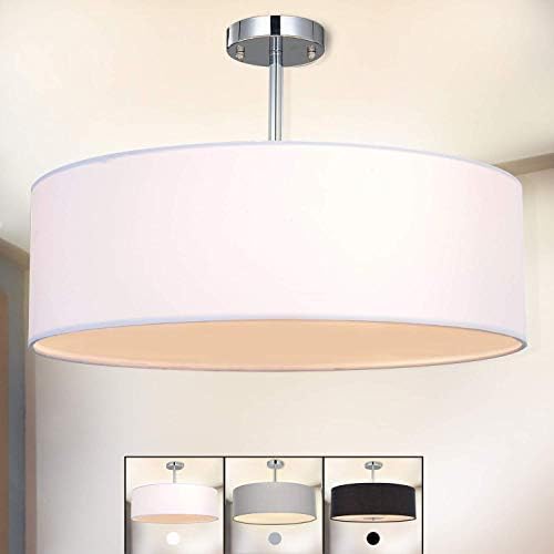 SPARKSOR Ceiling Light, Modern Fabric Pendant Light Shade, Large White Drum Lampshade, Round Pendant Lamp, for Bedroom Living Room, Flush Chrome Matt, 3 Bulb, E27