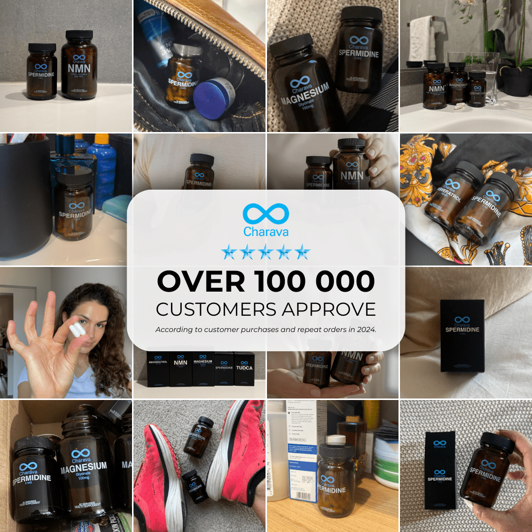 CHARAVA’S SPERMIDINE Charava Spermidine delivers 5mg of high-purity spermidine per capsule, formulated to support optimal cellular health, vitality, and lifespan. It is also: