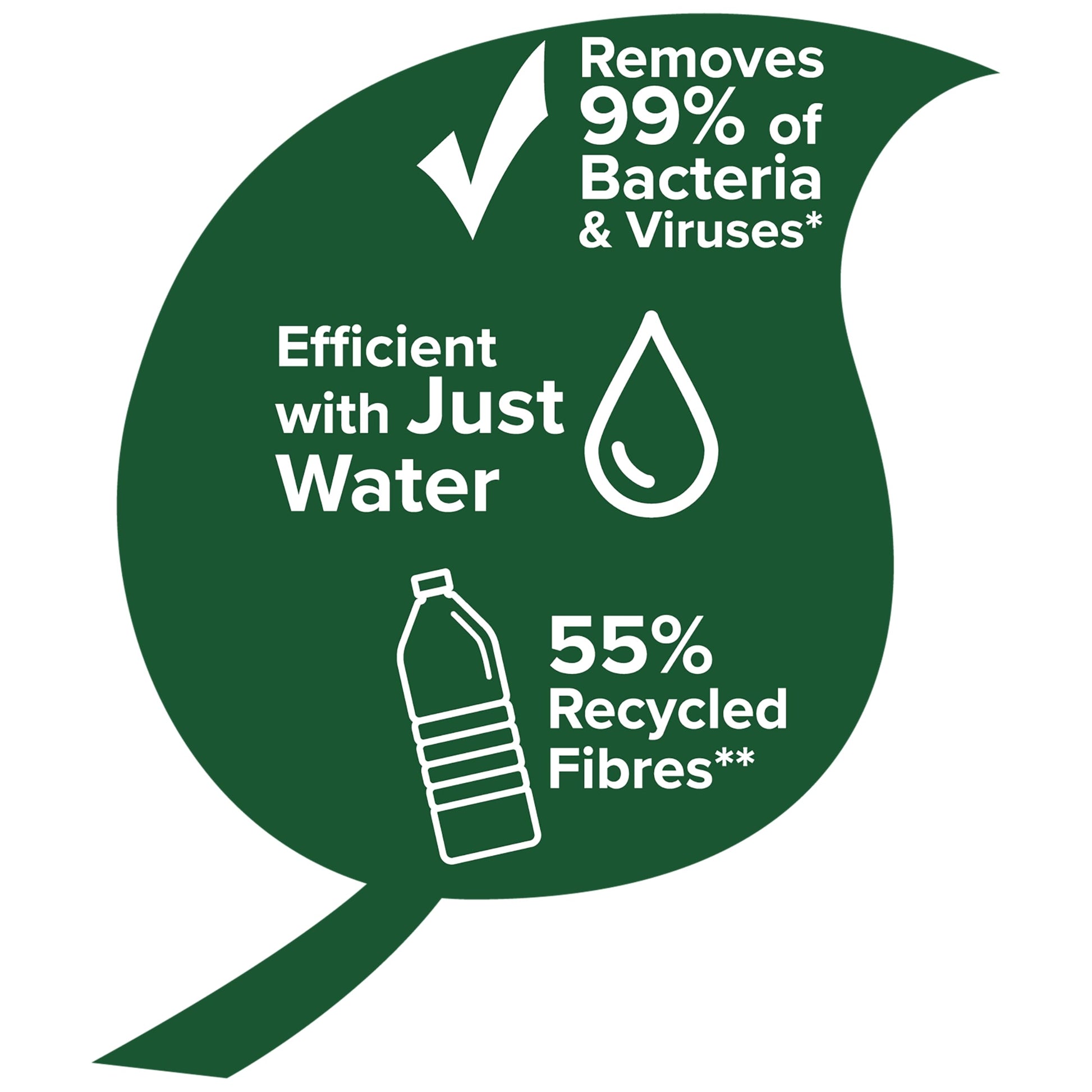 • EFFICIENT: With fibres 100x smaller than a human hair, these cloths are super efficient at capturing dirt, dust and bacteria