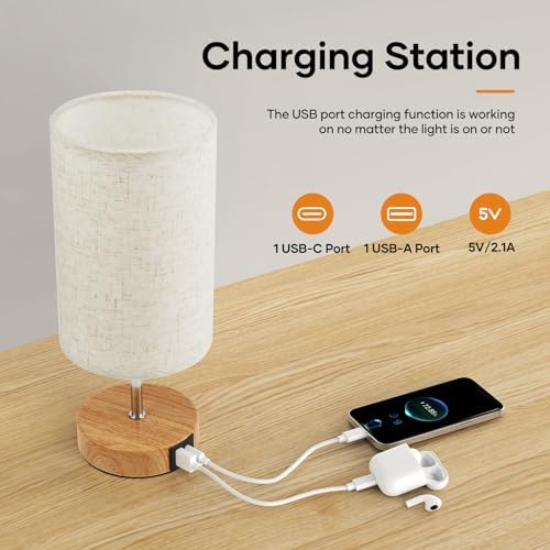 【Practical USB A+C Charging Port】: Bedside lamp is equipped with USB A & USB C charging ports(5V/2.1A), which can quickly charge your devices whether the light is on or off. The output voltage is safe and stable, so devices can be charged overnight