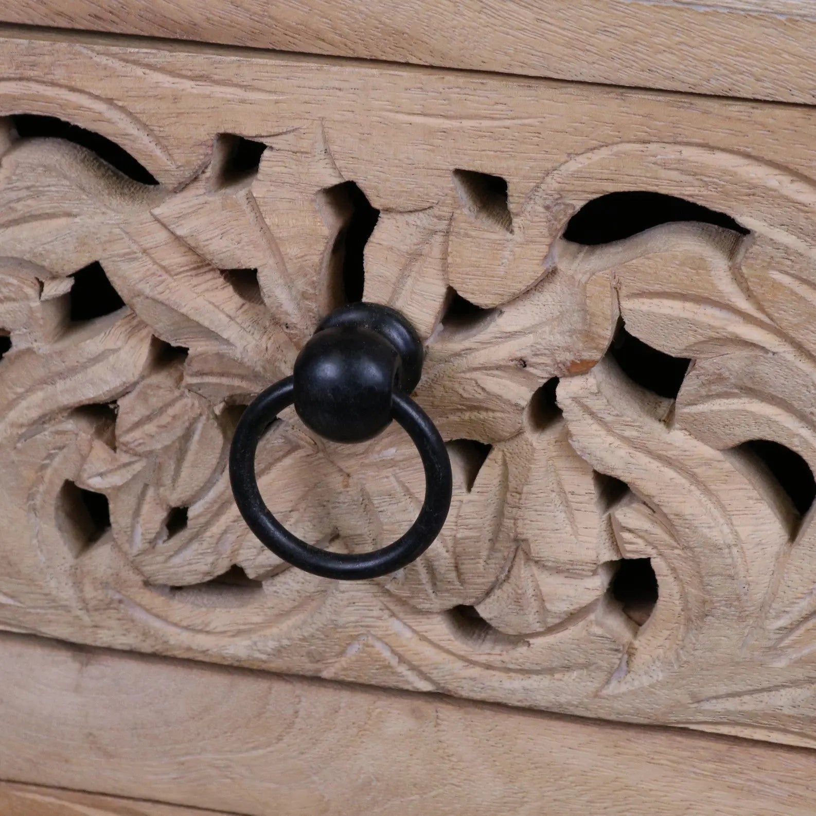 Hand-Carved Detailing: Each drawer front features intricate floral carvings made by skilled artisans in Rajasthan.