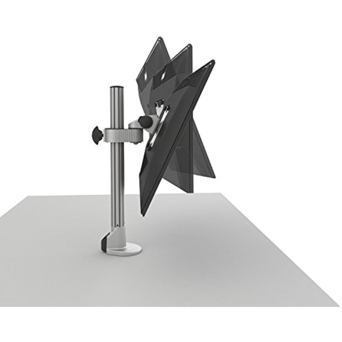 • This stand will allows 45°/45° of tilt and 360° of swivel movement for monitor mount, in addition to landscape to portrait rotation. Its configuration allows393mm of height adjustment is available