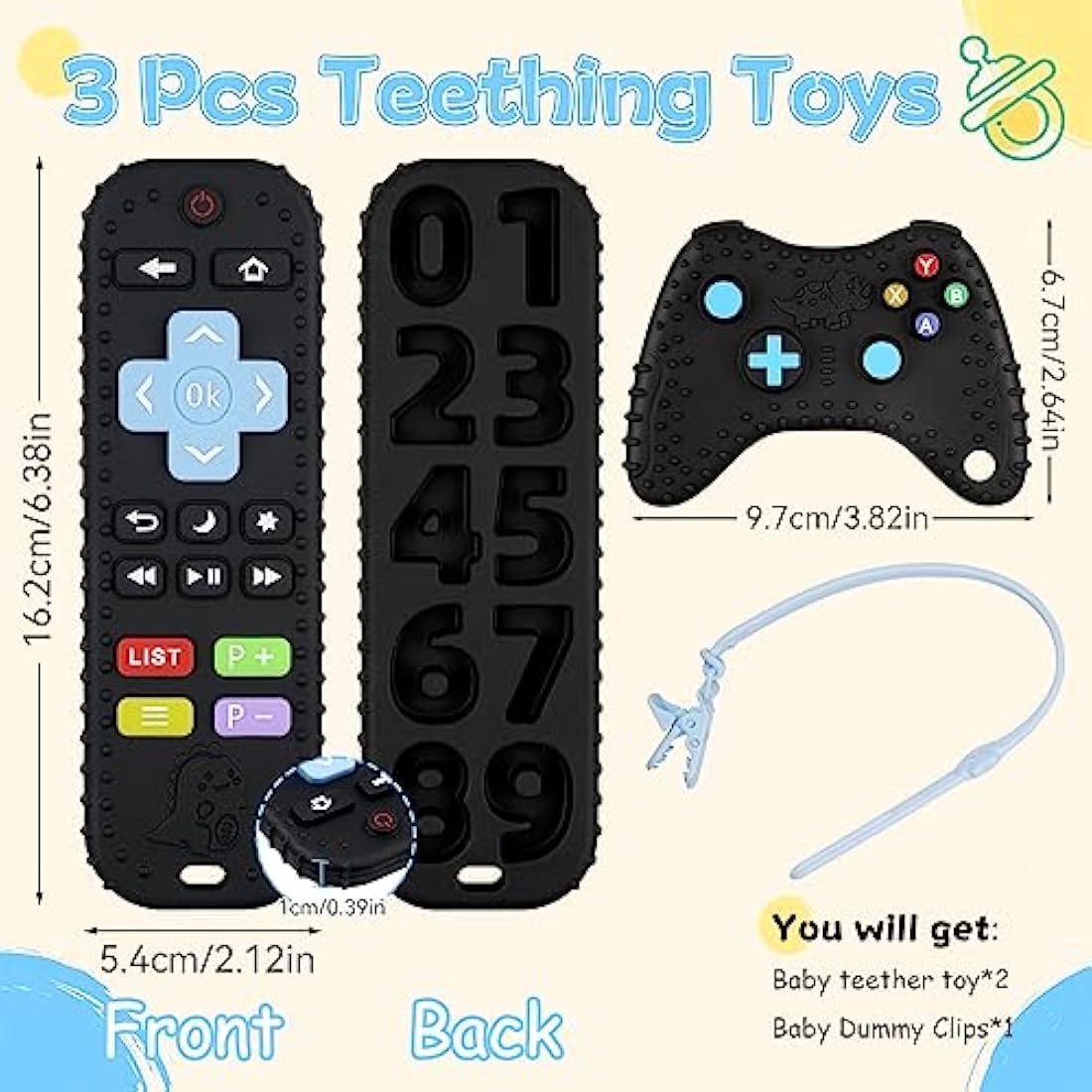 Tikplus Baby Teething Toys, Baby Remote Control & Game Controller Teething with Baby Dummy Chain, BPA-Free Silicone Teething Aid Baby Teether Relief for 0-6 Months