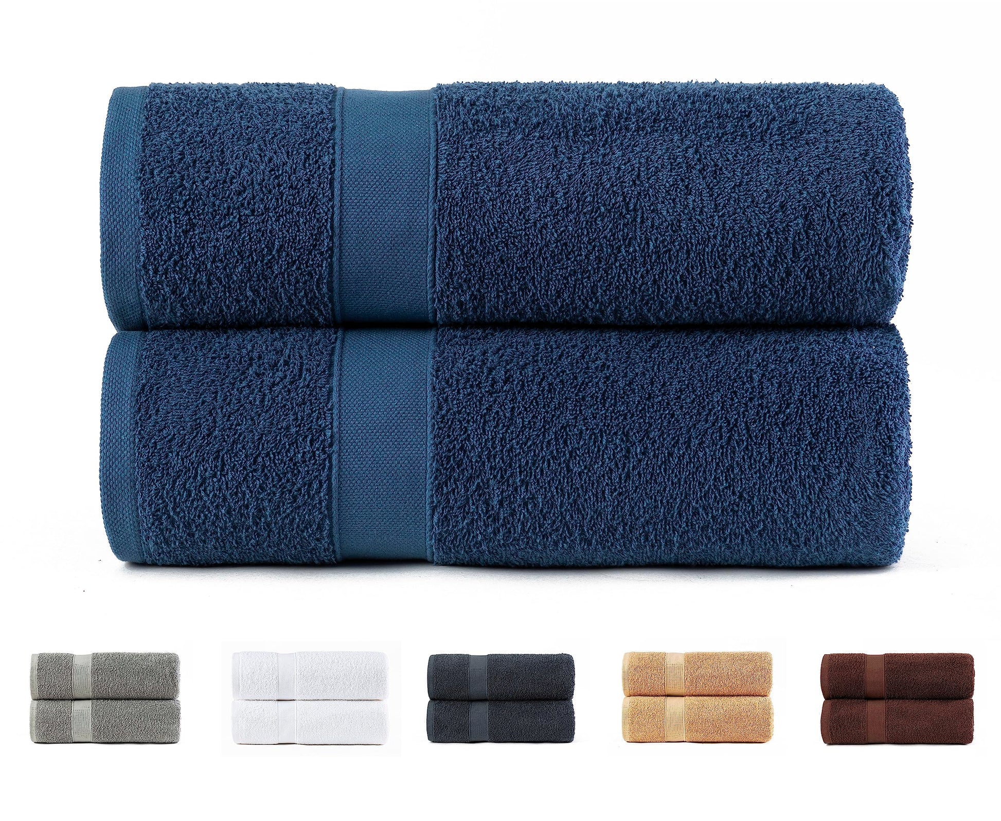 Todocama Set of 2 Large Bath Towels, 100% Cotton 550 GSM Extra Soft, Highly Absorbent and Quick Drying, 100 x 150 cm, Navy Blue