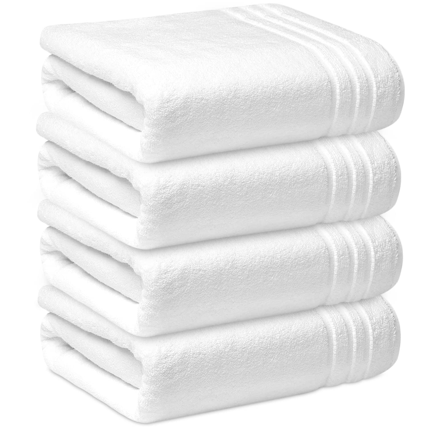 Towelogy® Commercial Grade Bath Sheets Large Size (100x150cm) 100% Egyptian Cotton Super Soft & Absorbent Body Wrap Shower Towels for Bathroom (Dove White, 4)
