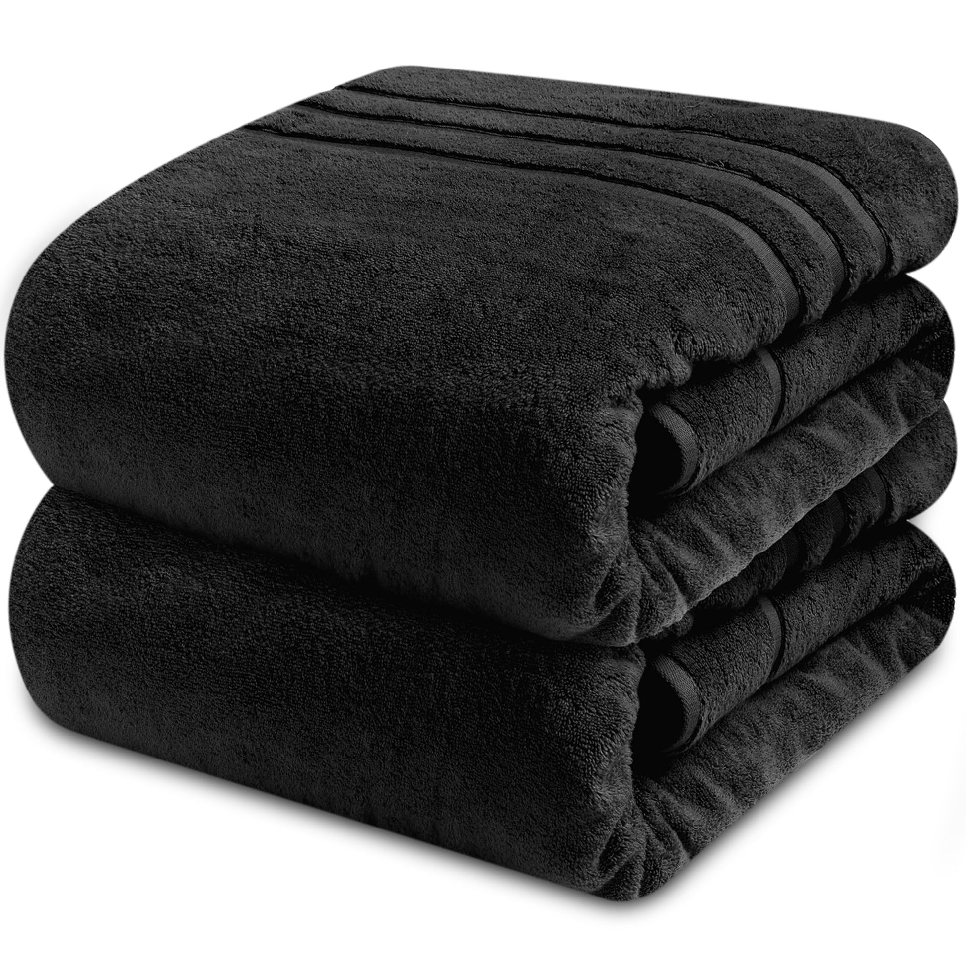 Towelogy Extra Large Bath Towels for Adults 90x140cm 100% Egyptian Cotton Zero Twist Absorbent & Super Soft Hotel Quality Bath Sheet | Ecofriendly Oeko-Tex Certified (Noir, 2)