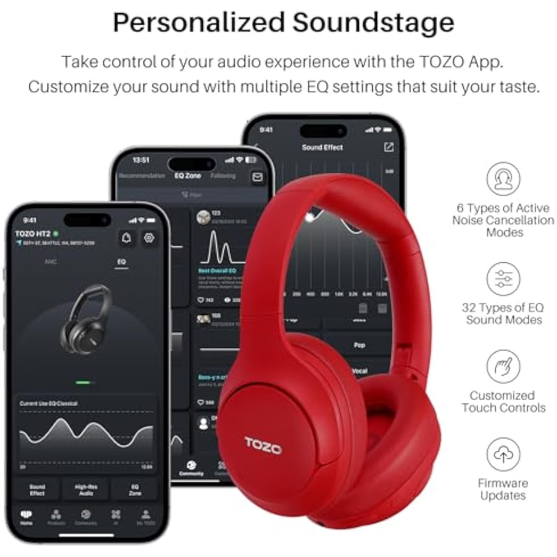 [ANC & ENC Noise Cancellation] Featuring a hybrid ANC algorithm and 3 ANC microphones, TOZO HT2 deliver exceptional noise control across a wide frequency range. Whether it's the roar of airplane engines, subway rumble, or office chatter, it effectively minimizes noise interference, ensuring an unparalleled listening experience. In addition, the excellent ENC call noise cancellation makes it possible for you to talk clearly even in noisy streets.
