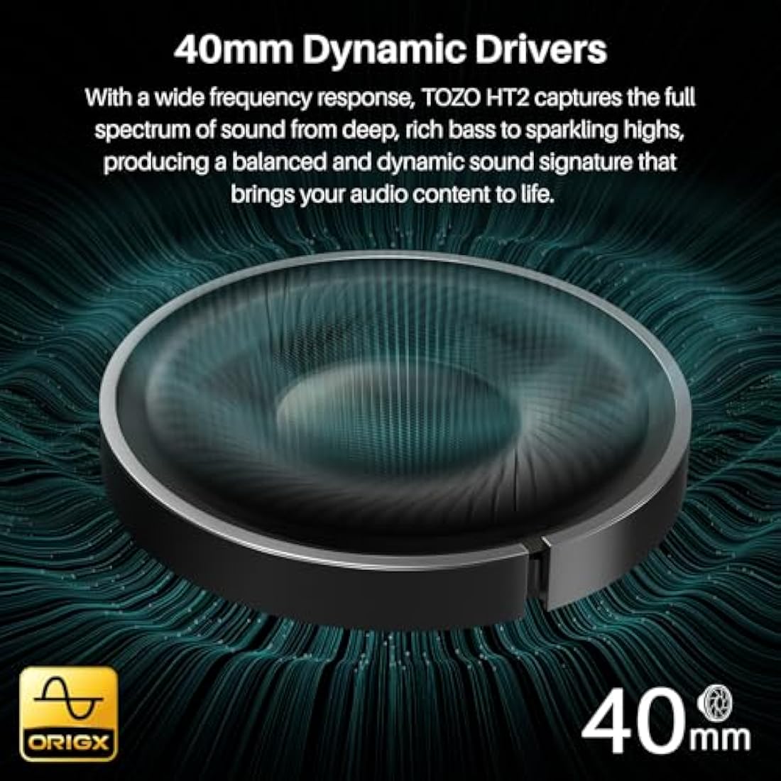 [Both Wired and Wireless Connections] Equipped with dual 40mm drivers, TOZO HT2 bring you superior Hi-Res audio sound with a well-balanced deep bass, make you have a better listening experience. Plus, it breaks the single connection method, support both wireless and wired connection. When with wired connection, custom oversized 40 mm dynamic drivers produce Hi-Res sound for extraordinary clarity and detail.