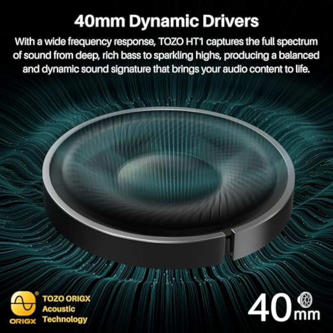 • [Both Wired and Wireless Connections] Equipped with dual 40mm drivers, TOZO HT2 bring you superior Hi-Res audio sound with a well-balanced deep bass, make you have a better listening experience. Plus, it breaks the single connection method, support both wireless and wired connection. When with wired connection, custom oversized 40 mm dynamic drivers produce Hi-Res sound for extraordinary clarity and detail.