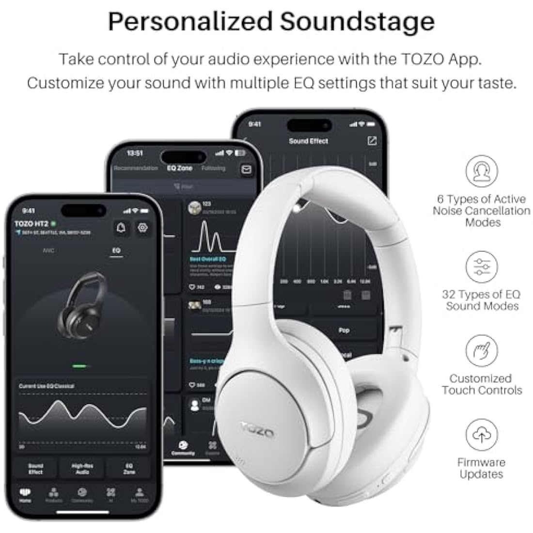 • [All-day Comfort & Adjustable Design] TOZO HT2 uses ultra-soft protein leather earcups, which allows you to wear it for a long time without feeling uncomfortable. The earmuffs can also automatically adjust the angle to suit users with different head shapes. Making them the ideal headphones to work from home or watch your favorite movie.
