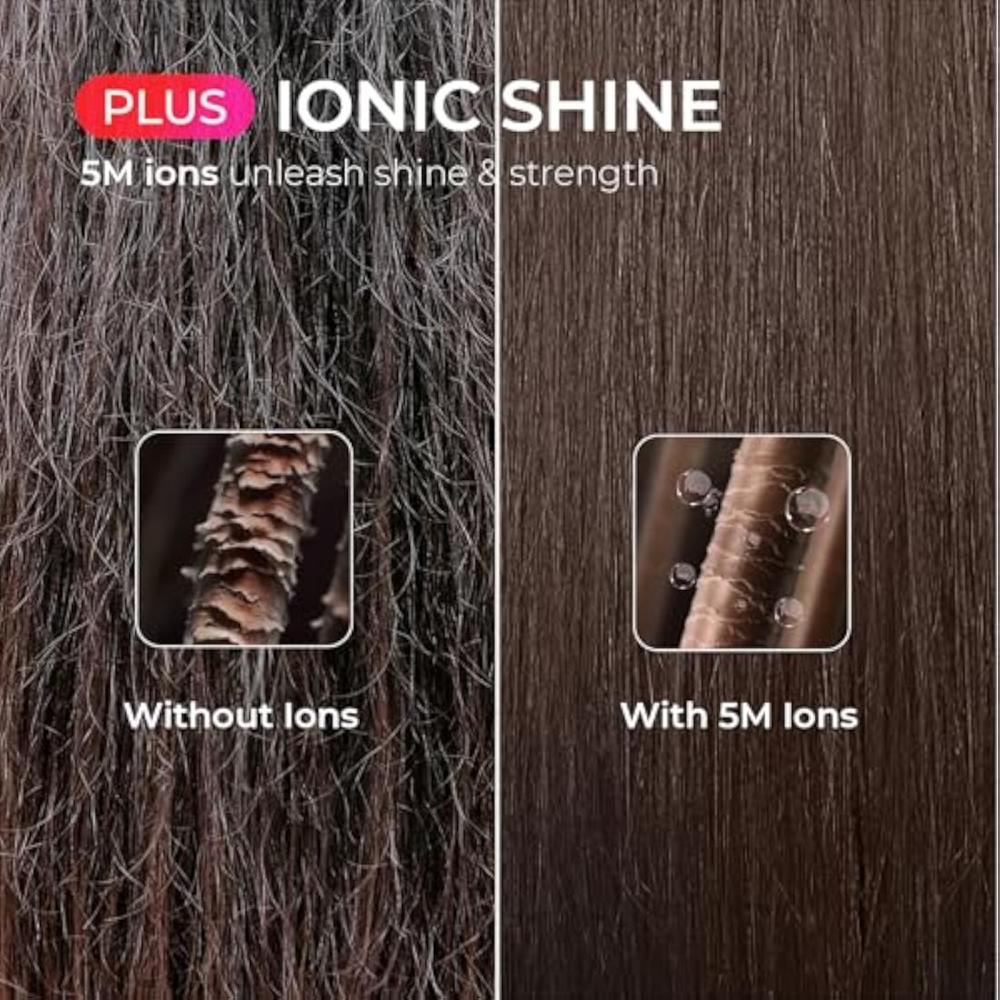 • IONIC PLUS - Plus with More Hair Care: Equipped with built-in double ionic generators, 50 million of negative ions are released to lock in the moisture in your hair, bringing out natural shine and reducing the breakage