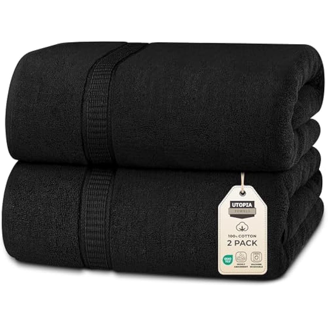 Utopia Towels - Premium Jumbo Bath Sheet (90 x 180 cm, 2 Pack) - 100% Ring Spun Cotton Highly Absorbent and Quick Dry Extra Large Bath Sheet - Super Soft Hotel Quality Towel (Black)