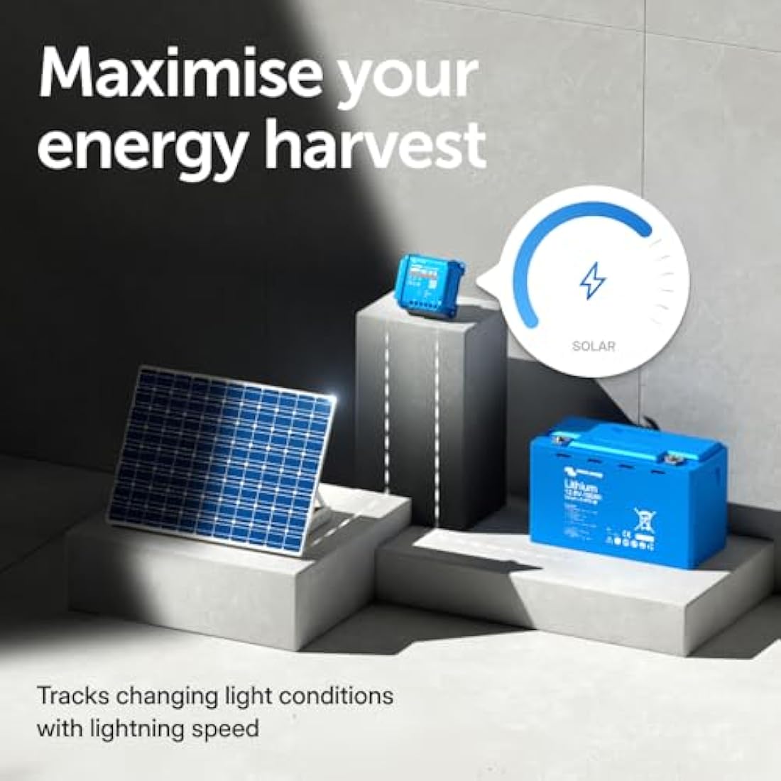 • SPEED & EFFICIENCY: With lightning-fast optimum power point tracking and intelligent charge algorithms the Victron MPPT solar charge controller makes sure you always get the maximum possible power output, even when your solar panels are partially covered in shade.