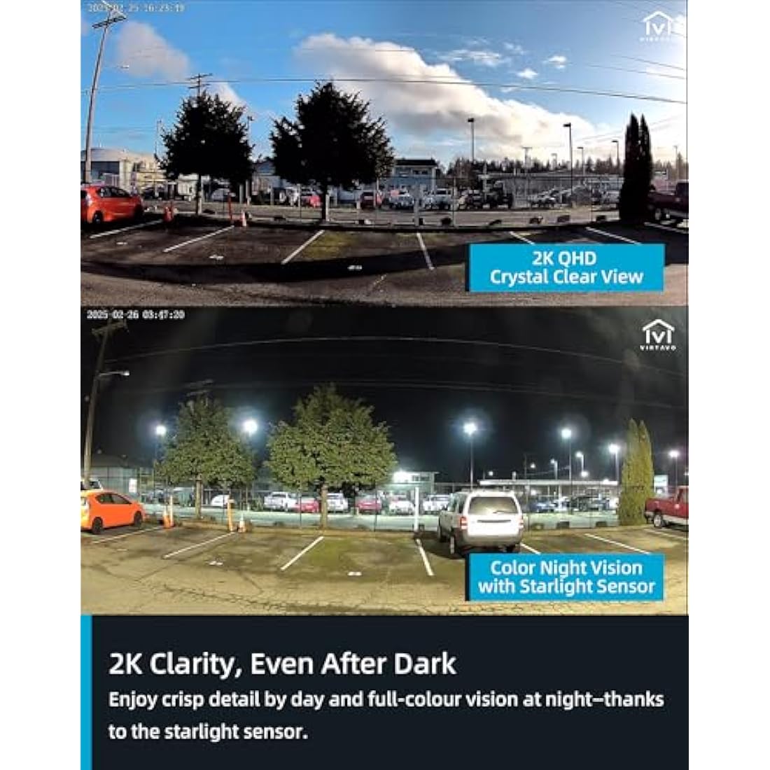 • Crisp 2K QHD Imaging & Night Vision:Experience superior security with our wireless outdoor camera, featuring 2K QHD resolution and Starlight color lenses with F1.6 aperture for vivid day/night images. Equipped with 2 Highlight IR LEDs for clear night vision