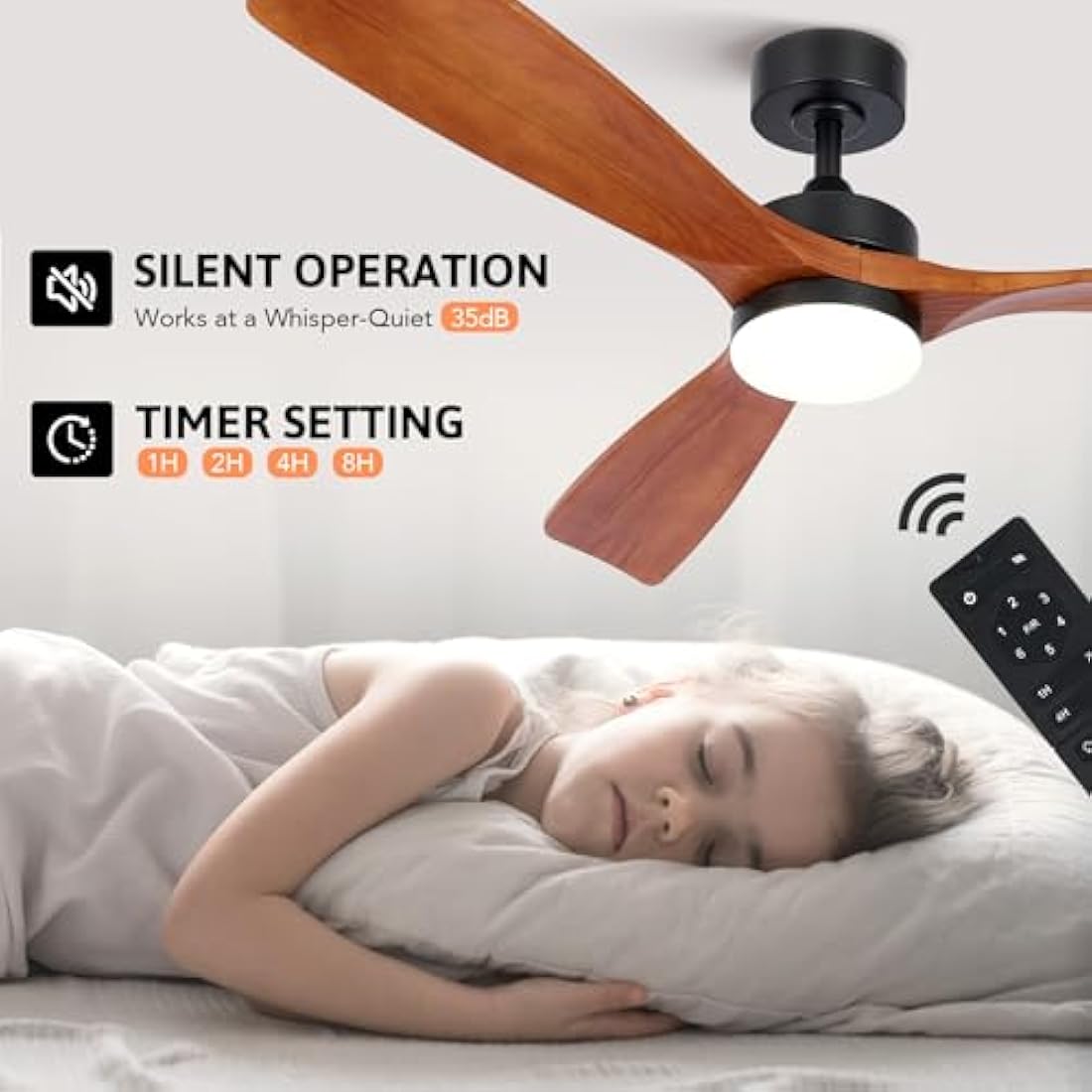 VONLUCE Ceiling Fans with Lights, 52 Inch Outdoor Ceiling Fan with Remote, 6 Speed Reversible Noiseless DC Motor, Wood Ceiling Fan for Indoor Bedroom Farmhouse Patios, Walnut