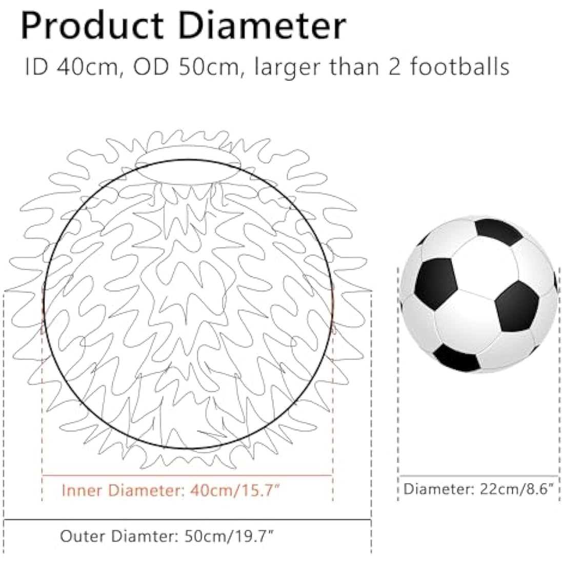 • Dimension and Weight: Inner diameter 40cm. Outer diameter 50cm. Weight 0.5 to 0.7kg.
