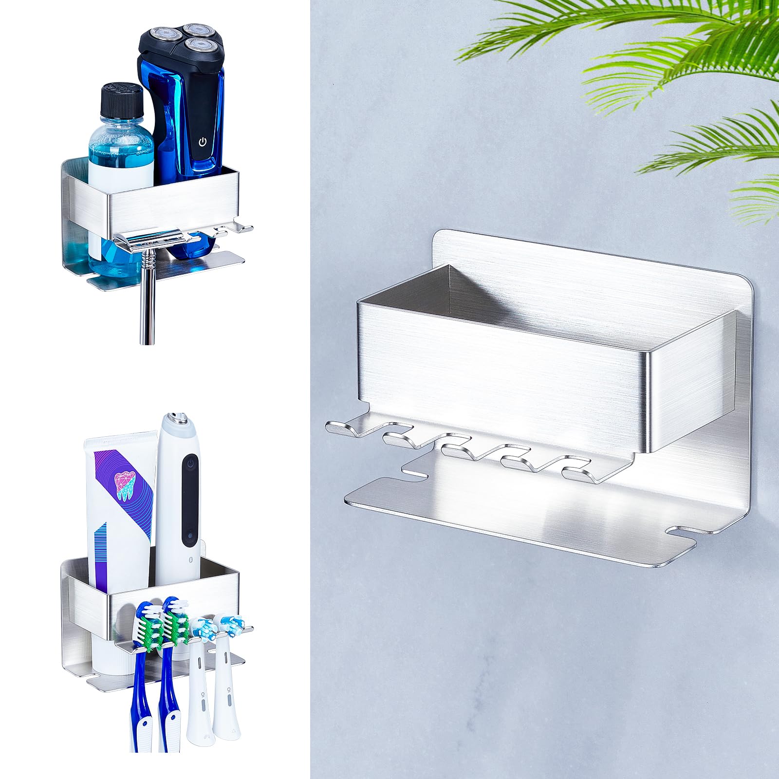 • MULTIFUNCTIONAL STORAGE: The toothbrush holders features accommodates electric and manual toothbrushes. You can also store toothpaste, razors, facial cleansers, and other items.