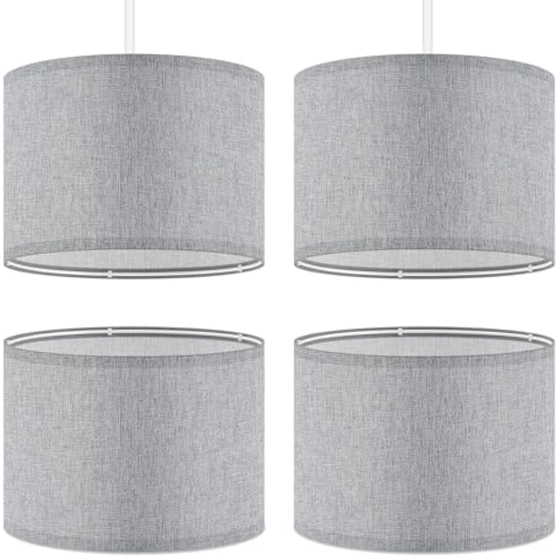 Weewooday 4 Sets Fabric Lampshade with E27 to E14 Adapter Ring Modern Ceiling Pendant Table Drum Light Shade Linen Lamp Shades for Table Bedside Floor Lamp(Grey,10 Inch)