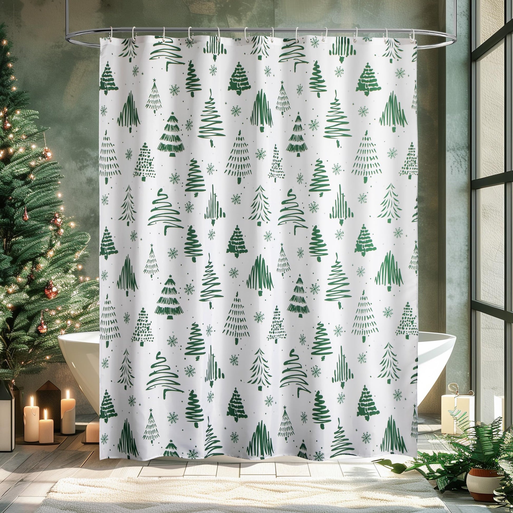 WELTRXE Christmas Shower Curtain, Mould Proof Mildew Resistant Shower Curtain, Green Christmas Tree Pattern, 183X183cm Polyester Bathtub Curtain with