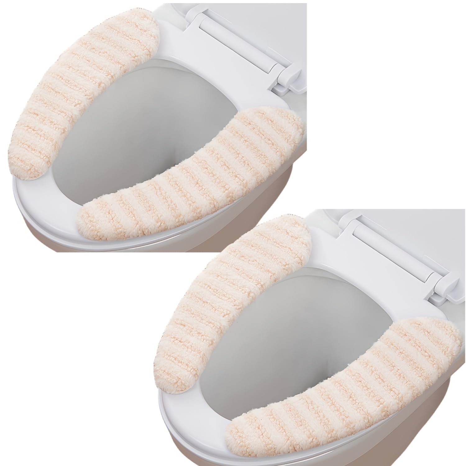 Wuyue Hua 2Pairs Plush Warm Thick Padded Toilet Seat Cover Mat Non Slip Soft Toilet Seat Cushion Washable Bathroom Warmer with Self-Adhesive Tape