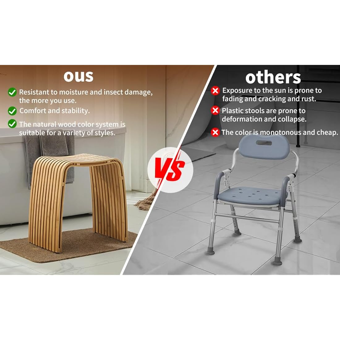 【Stylish Unique Designed Bamboo Stool】Unique modern M-shaped arch design that matches perfectly with a variety of home décor. High-quality bamboo design, waterproof and stain-proof, it can not only be used indoors, you can also take it with you for outdoor camping due to its bamboo properties.