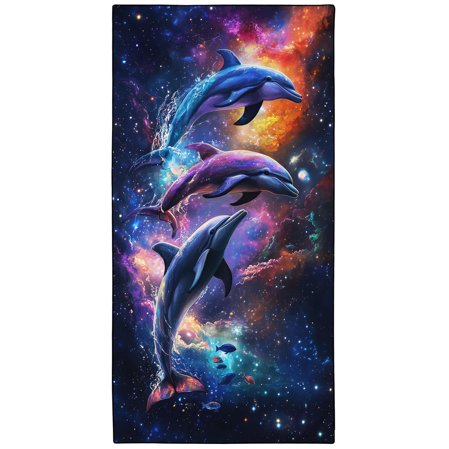 YISUMEI Galaxy Dolphins Beach Towels for Adults Extra Large 180 x 90 cm, Microfibre Lightweight Quick Dry Towel for Swimming Pool Cruise Travel Sports