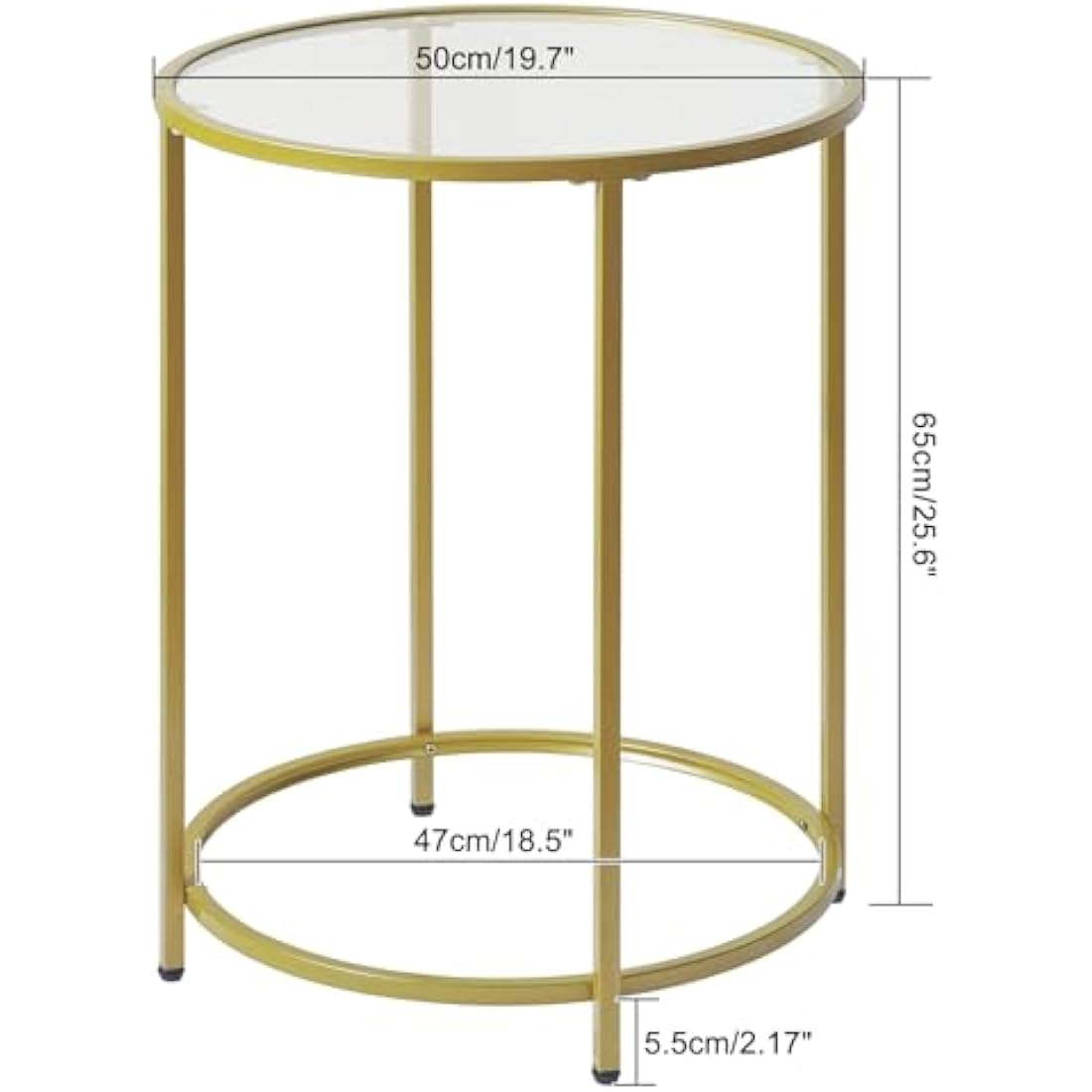 YMYNY Round Side Table, 2 Tier Accent Table, Tempered Glass End Table, Small Coffee Table, Sofa Table, Bedside Table, Modern Style, for Living Room, Bedroom, Balcony 50×50×65CM Gold HGD020G